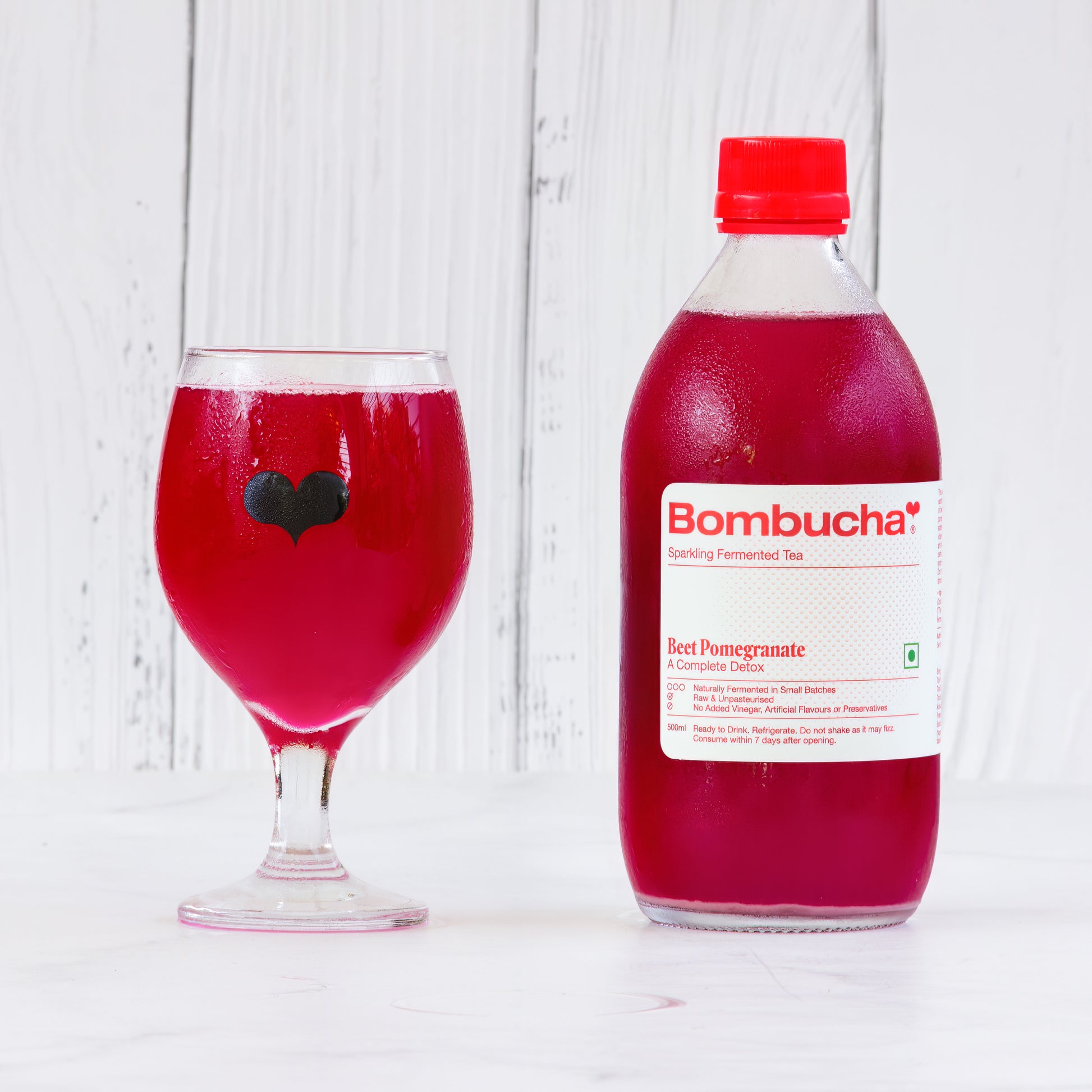 Our handcrafted Beet Pomegranate Kombucha is a vibrant blend of freshly juiced beetroots and the luscious essence of pomegranate. Sip your way to a happy heart and radiant skin with this authentic kombucha, crafted to nourish and invigorate. With its rich color and delightful taste, it's a perfect balance of sweetness and tartness, providing a truly revitalizing drinking experience.