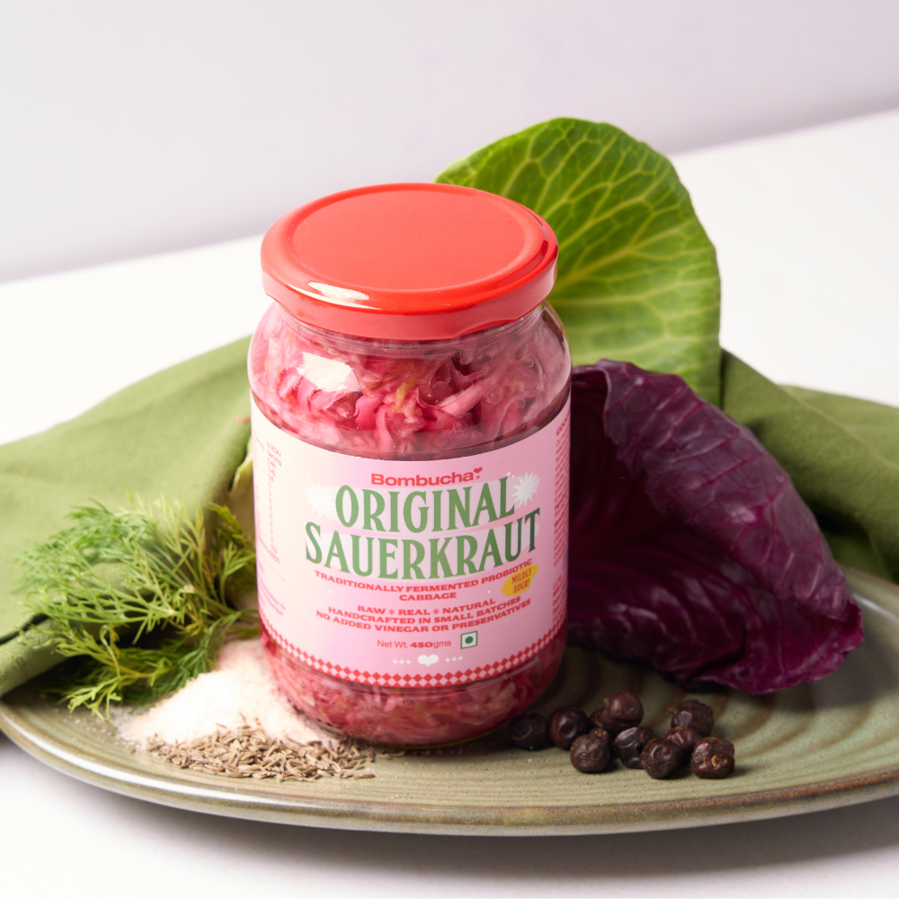 Taste: Original Sauerkraut is a harmonious blend of tangy and salty flavours. The cabbage's natural sweetness balances with the tang from fermentation, while Himalayan Pink Salt, dill, juniper berries, and caraway add a herbaceous and slightly piney undertones.