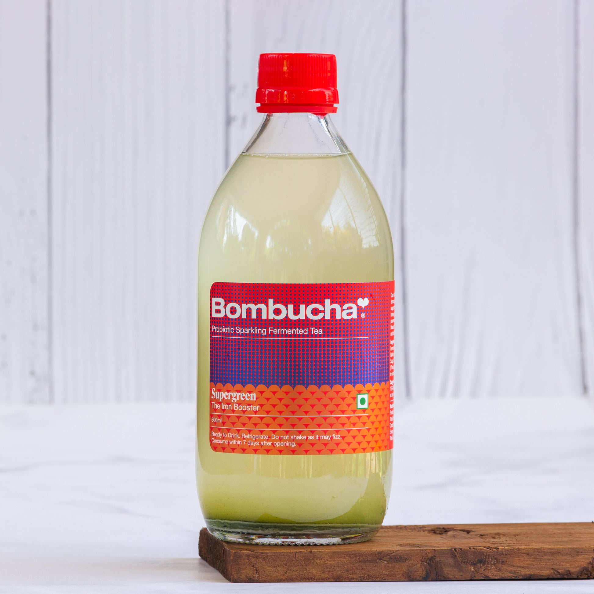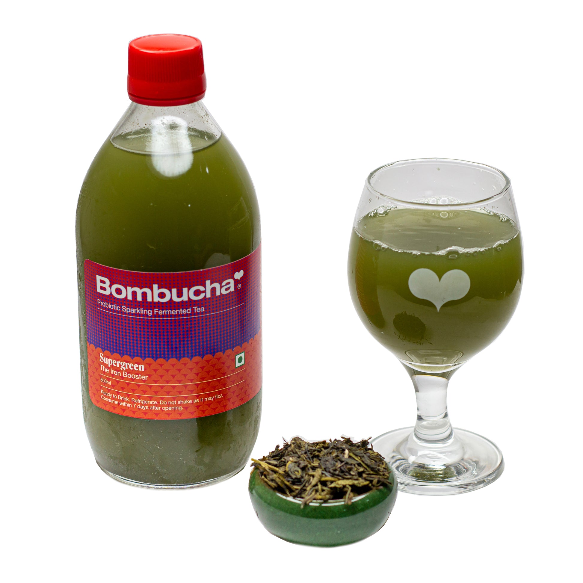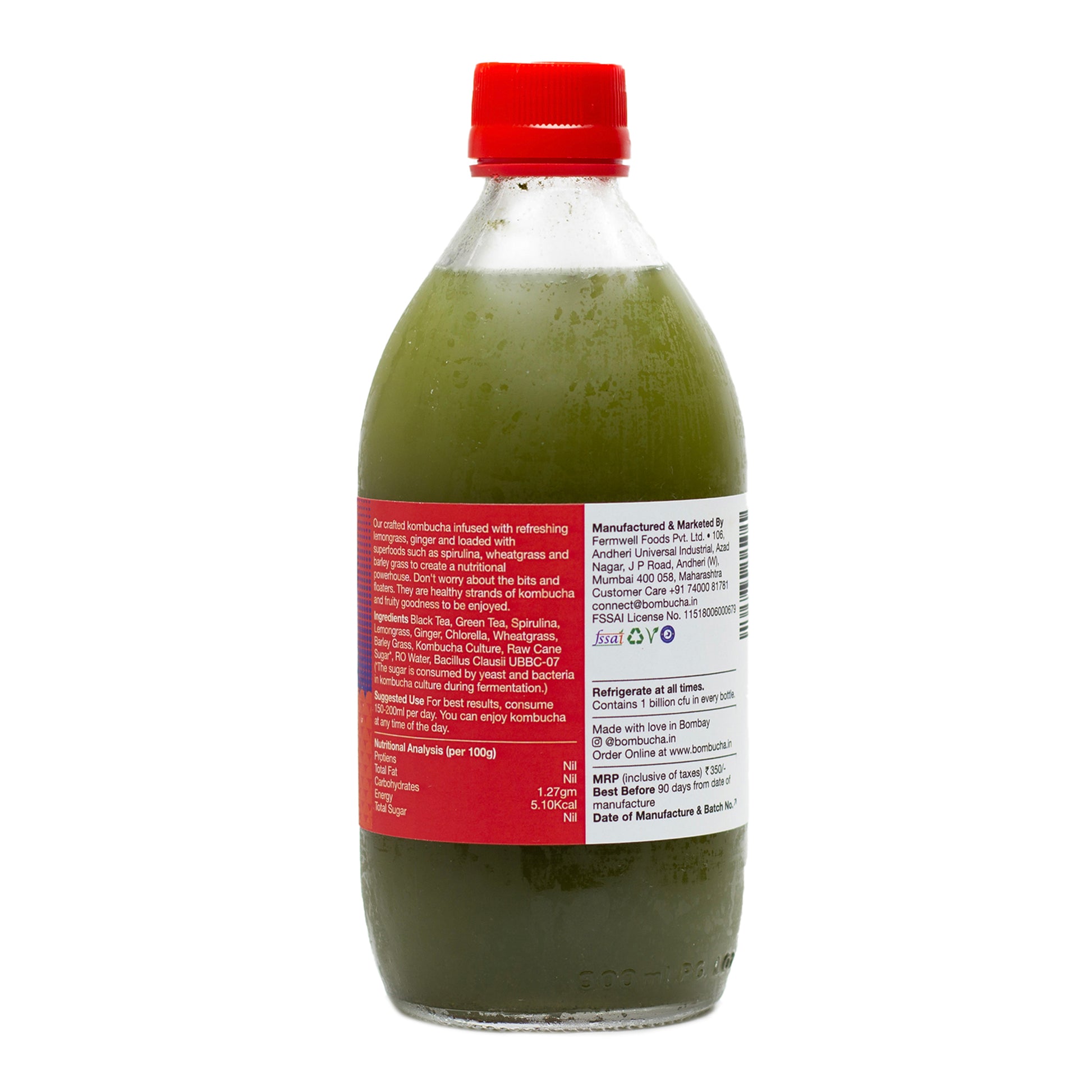 INGREDIENTS: Black Tea, Green Tea, Spirulina, Lemon Grass, Ginger, Chlorella, Wheatgrass, Barley Grass, Kombucha Culture, Raw Cane Sugar, RO Water, Bacillus Clausii UBBC-07